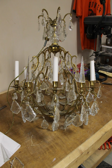 I have been blessed again. The grandmother of a friend of my youngest daughter called me and asked me if I was interested in a crystal chandelier and a ceiling medallion. I was so grateful that she called me. I immediately jumped at the chance to update these two items and make them fit into our home.